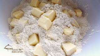 Am pregătit același aluat ca la tarta cu spanac: (http://retete-de-mancaruri.blogspot.ro/2013/05/rete-culinare-tarta-cu-spanac-si.html) am frământat făina și untul până s-au fărâmițat,